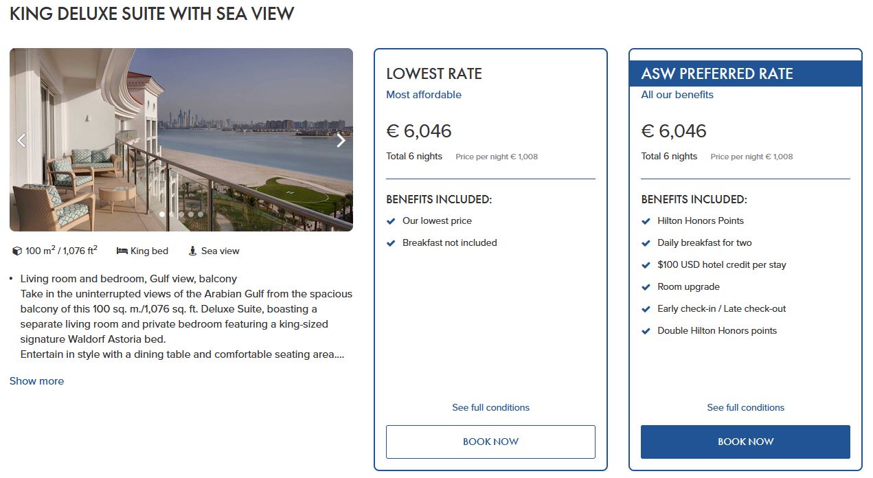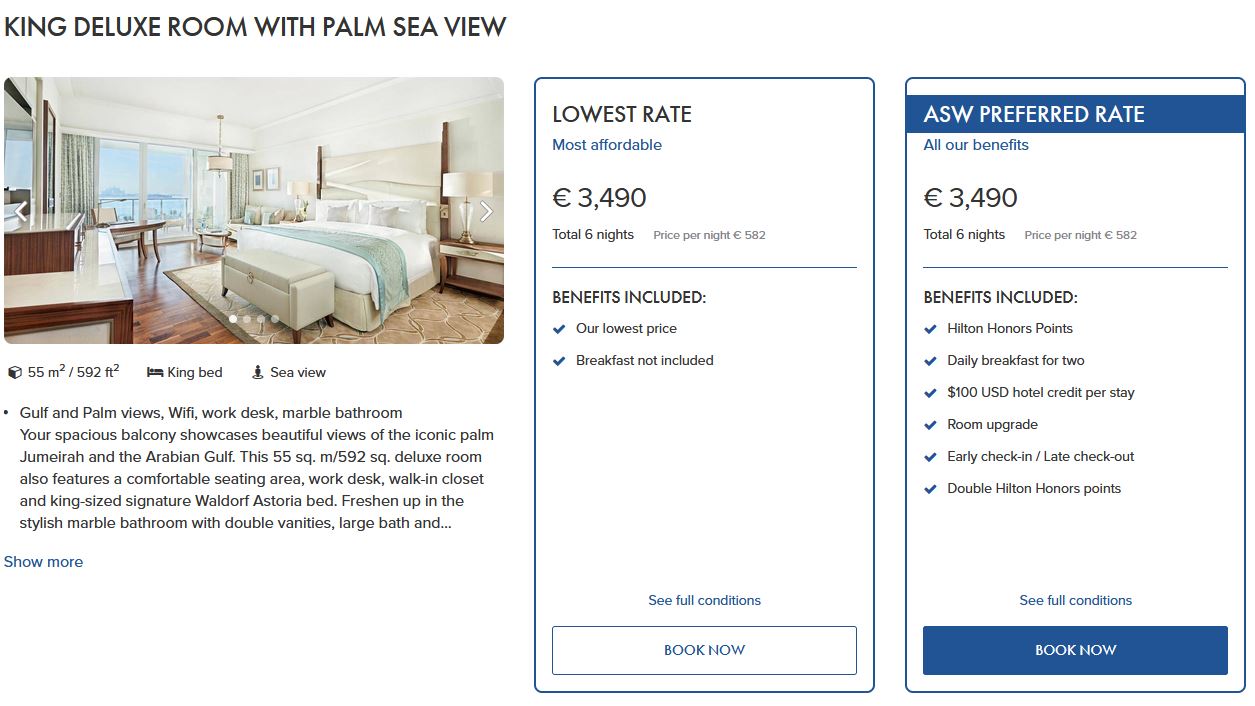 Beispiel 1 – Waldorf Astoria Palm Jumeirah Dubai – 2.500 Euro Vorteil
