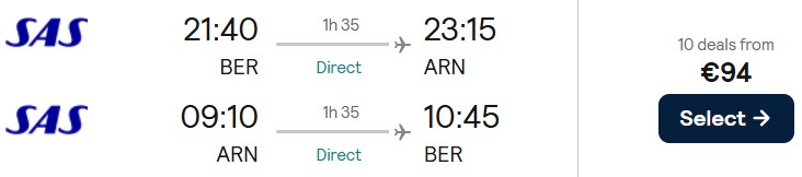 Fliegen Sie mit SAS Scandinavian Airlines preiswert von Berlin nach Stockholm. Verfügbar ist das Angebot von April bis Juni 2026.