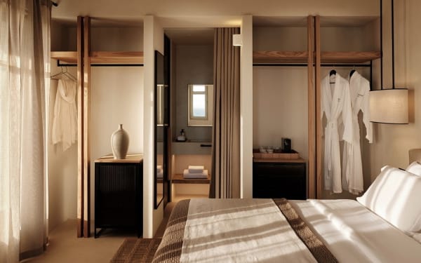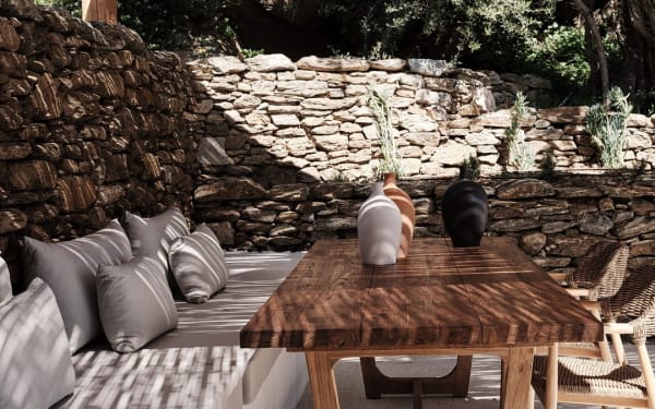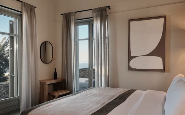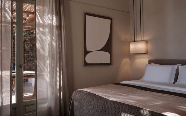 Alle Unterkünfte des auf einem Hügel gelegenen Stamna Sifnos bieten eine Terrasse oder einen Innenhof und Meerblick nach Osten – ideal, um den Sonnenaufgang über dem Horizont zu beobachten. Das vom Studio Tsimpos and Associates entwickelte Design setzt auf Marmorböden von den Inseln Tinos, Naxos und Paros und maßgeschneiderte Möbel, die vor Ort aus Gusseisen, geripptem Glas und Olivenholz hergestellt wurden – ergänzt durch Keramikdekor und hochwertige Seiden-, Leinen- und Baumwollelemente, die ebenfalls von den nahe gelegenen Inseln stammen.