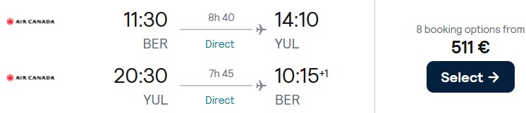 Fliegen Sie nonstop mit Air Canada schon ab 511 Euro von Berlin nach Montreal. Verfügbarkeiten gibt es von Juli bis Oktober 2026.