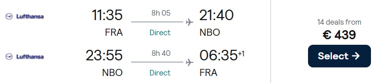 Fliegen Sie nonstop mit Lufthansa bereits ab 439 Euro von Frankfurt nach Nairobi. Verfügbarkeiten gibt es zwischen März und Mai sowie von September bis Dezember 2026.