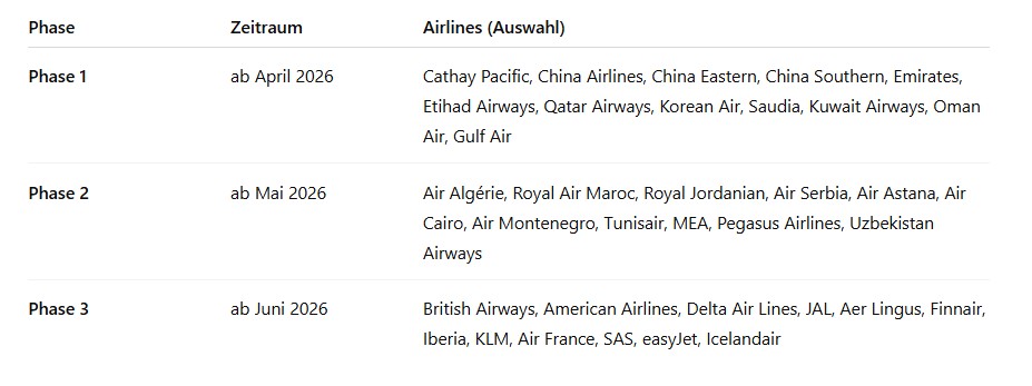 Zum Start nutzen insgesamt 57 Fluggesellschaften das neue Terminal 3, die dauerhaft vom Terminal 2 umziehen und künftig ihre Flüge dort abwickeln. Der Wechsel erfolgt in vier Phasen und soll bis zum 9. Juni abgeschlossen sein. Bereits fest steht außerdem, dass im Sommer 2027 auch Condor als zweitgrößte Airline am Flughafen Frankfurt ins Terminal 3 wechseln wird.