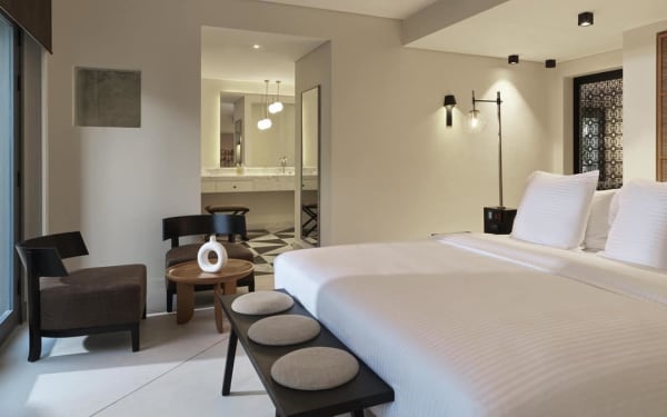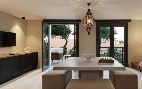 Das Design des luxuriösen, aber dennoch familienfreundlichen Hideaways verbindet eine zeitlose Ästhetik mit orientalischer Eleganz und asiatischen Einflüssen. Außen wie innen prägt eine Farbpalette aus Nude- und Erdtönen das Bild – ergänzt durch minimalistisches Mobiliar aus hochwertigen Materialien. Authentische orientalische Therapien mit Hautbehandlungen, Detox-Anwendungen und Massagen warten im Spa-Bereich.