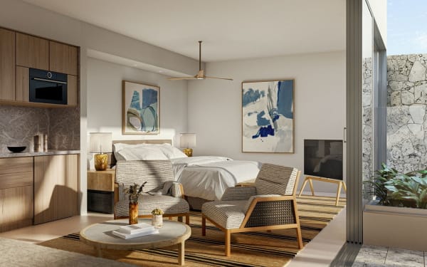 Das Mitglied der „The Leading Hotels of the World“ verfügt über 112 Luxus-Suiten in den Hauptgebäuden, von denen einige mit privaten Pools aufwarten, sowie eine Reihe von Villen und Residenzen mit bis zu sechs Schlafzimmern, geräumigen Terrassen und handgefertigten Infinity-Pools. Die moderne Innenausstattung prägen raumhohe Fenster mit Panoramablick auf das Meer, natürliche Materialien, hochwertige Oberflächen wie Korallenstein und maßgefertigte Möbel.
