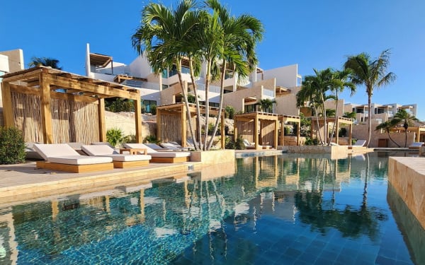 300 Kilometer weiße Sandstrände, ein glasklares, türkisblaues Meer und einige der besten Spots für Taucher und Schnorchler machen die 40 kleinen Inseln der Turks and Caicos zu einem ganz besonderen Urlaubsziel in der Karibik. Entsprechend groß ist die Auswahl an luxuriösen Unterkünften in diesem britischen Überseegebiet südöstlich der Bahamas – aber nur wenige können mit dem Fünf-Sterne-Resort The Strand mithalten, das soeben an einem 700 Meter langen Küstenstreifen in der Cooper Jack Bay auf der Insel Providenciales eröffnet hat.