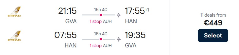 Mit Etihad Airways fliegen Sie von Genf nach Hanoi ab 449 Euro. Verfügbarkeiten gibt es zwischen Januar und Juni 2026.