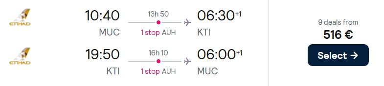 Fliegen Sie mit Etihad Airways in der Economy Class ab 516 Euro von München, Frankfurt und Zürich nach Phnom Penh. Verfügbarkeiten gibt es von Ende November bis Dezember 2025.