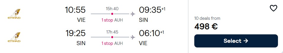 Fliegen Sie mit Etihad Airways von München, Frankfurt und Wien ab 498 Euro in der Economy Class nach Singapur. Verfügbarkeiten gibt es von September bis November 2026.