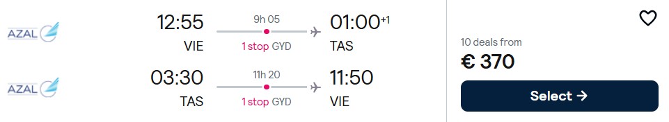 Fliegen Sie mit Azerbaijan Airlines ab Berlin und Wien nach Tashkent in Uzbekistan ab 370 Euro. Verfügbarkeiten gibt es bis Mitte Mai sowie von September bis Mitte Dezember 2026.